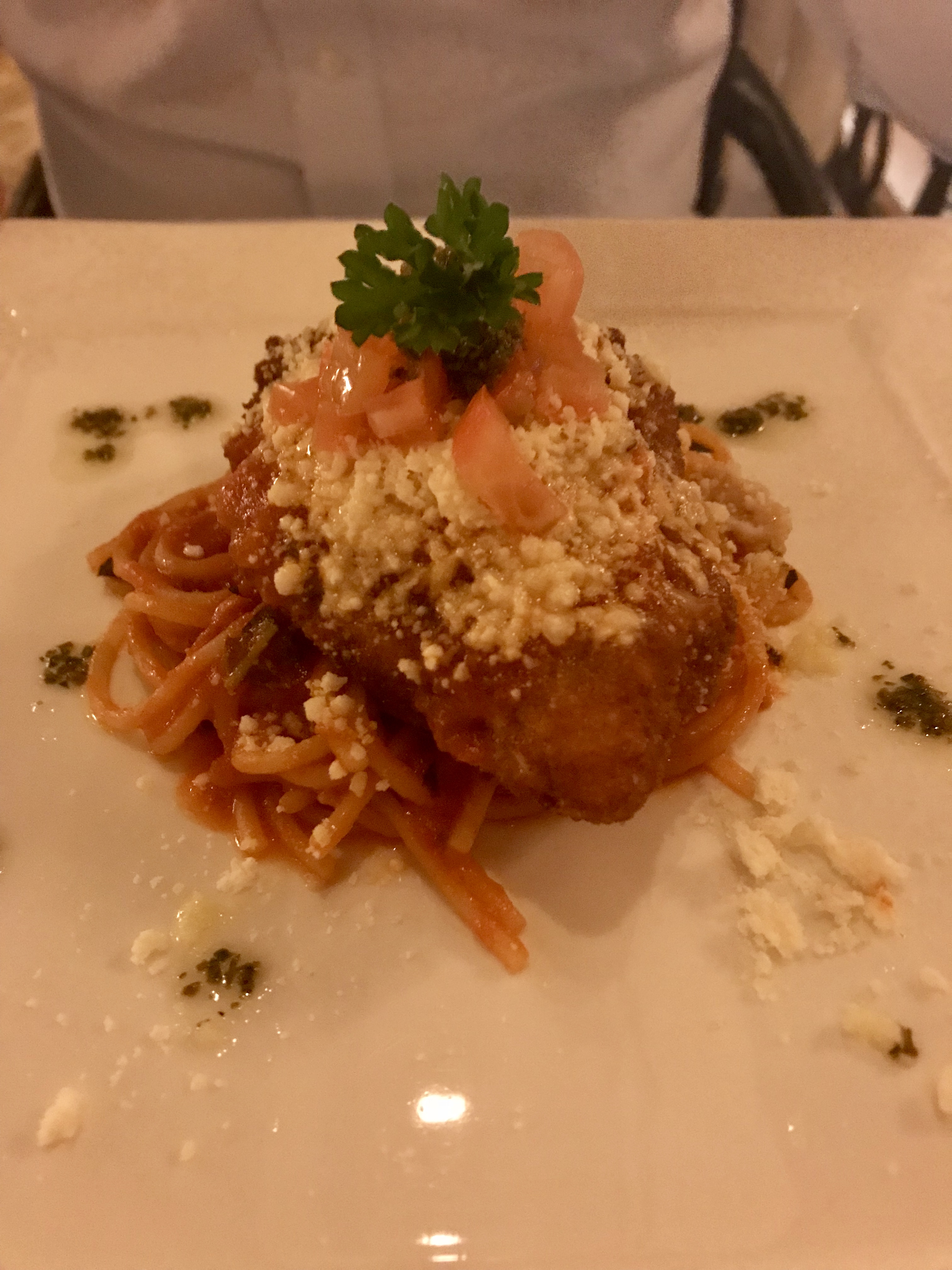 Eating is one of my favorite things to do, so it was always fun to pick out where we’d have dinner. Each morning, a newsletter would arrive at our room with the restaurants that were available that day, any themed meals or specials that were taking place, and activities throughout the day. We’re major introverts, but we did end up joining in some games and competitions.